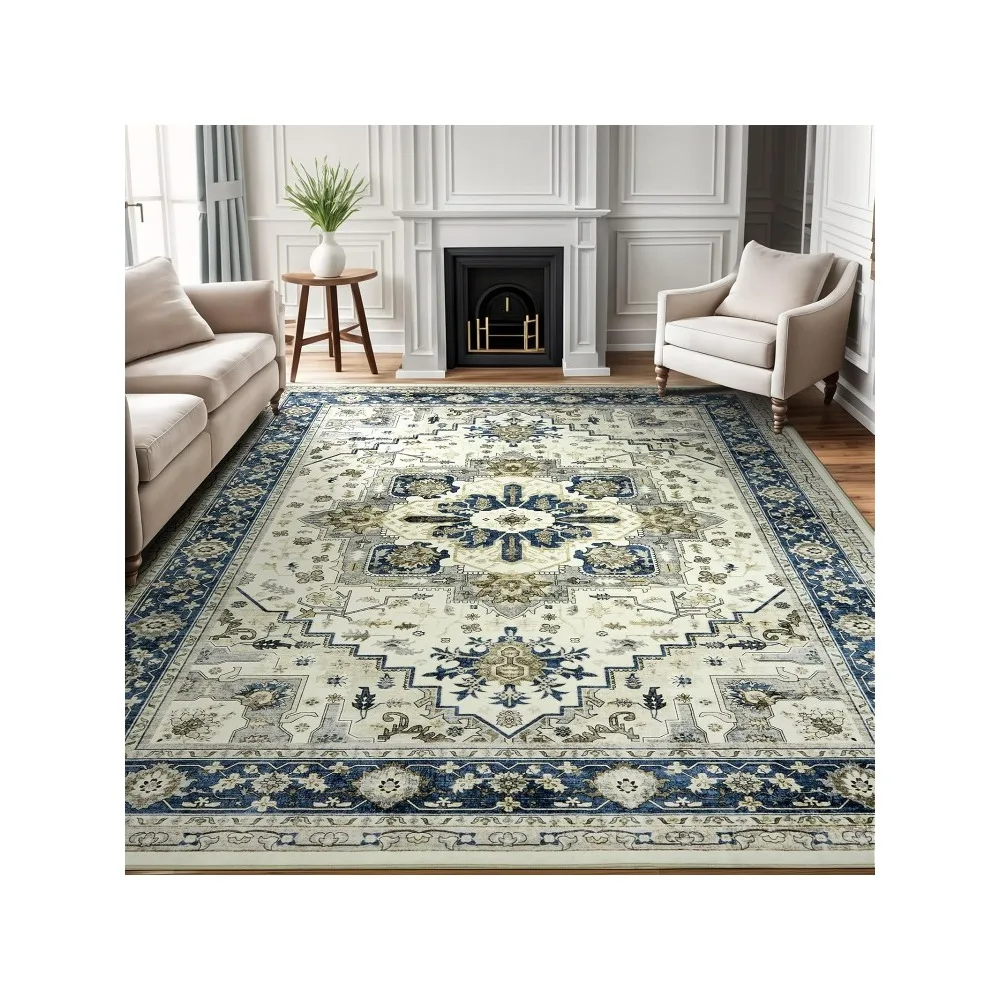 • Unique Art Design: The carpet pattern adopts traditional oriental style, You can use this neutral area rugs in anywhere of your home, it goes-with-anything decor styles from country to contemporary, washable area rugs 9×12 suitable for living rooms and bedrooms